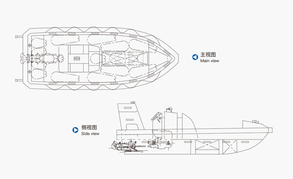 本艇的设计、制造和试验完全符合经MSC.226(82)、MSC.274(85)、MSC.321(89)和MSC.323(89)修正的MSC.81(70)《经修正的就生设备试验建议》第1部分;1974年国际海上人命安全公约及其修正案第Ⅲ章第21、31、34条;经MSC.218(82)、MSC.272(85)、MSC.320(89)修正的MSC.48(66)《国际救生设备规则》第Ⅴ章的要求; 艇体为阻燃型玻璃钢;供人员行走的表面均为防滑面;内壳与外壳的聚氨酯泡沫给救助艇提供足够的浮力。如果在水线下面的船体有损坏,浮体仍可提供足够的浮力使艇在安全水平面上漂浮。救助艇两侧设有钢性扶手以便乘员上下,自滔式甲板确保进入艇内的海水快速排放;艇上装有手摇泵,用于排除艇内积水;艇上装有不锈钢吊钩系统,采用吊艇索下放或回收;救助艇配备自扶正空气箱,满足客货滚装轮的使用要求;本艇可满载全速航行大于4小时,在有3人乘员情况下航速可达到20节以上,在满载情况下航速可达到8节以上。